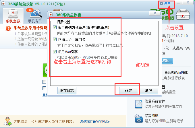 ⒎.急救【完成上面设置后就可以开始点击急救查杀了】 | |