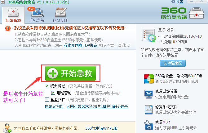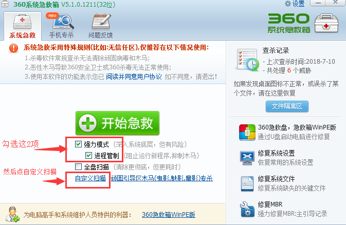 ⒎.急救【完成上面设置后就可以开始点击急救查杀了】 | |